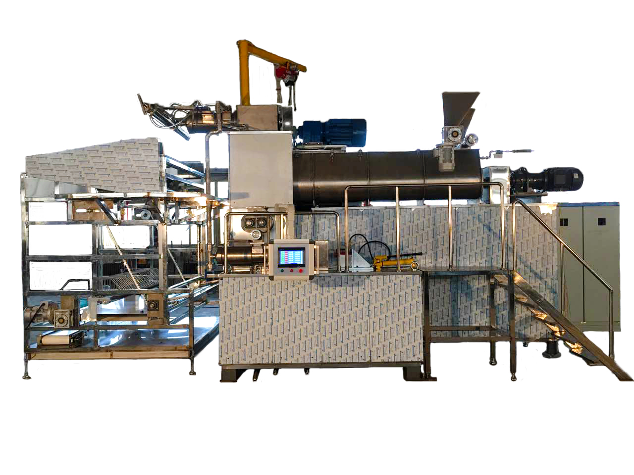 通過螺桿輸送使面團(tuán)均勻、穩(wěn)定的落入到擠出工序,輸送速度可調(diào);